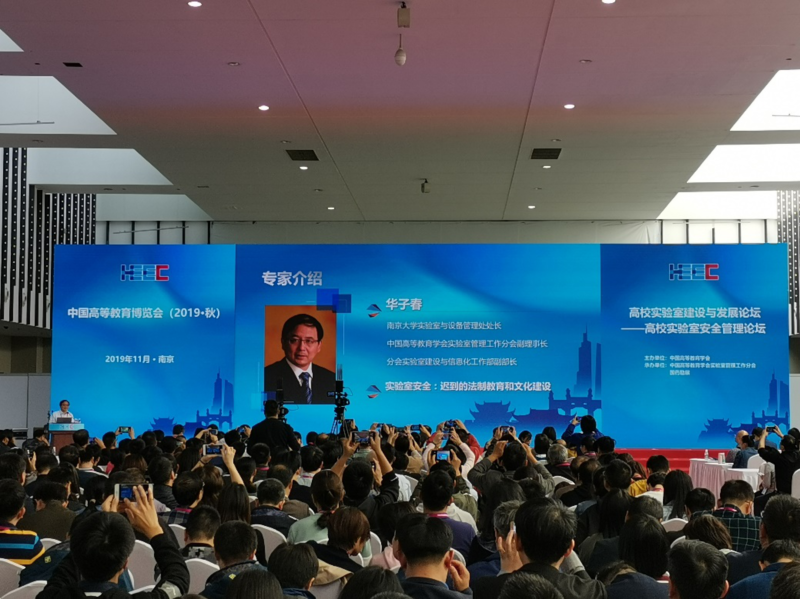 本次博览会在新中国成立七十周年之际举办,是深入贯彻党的十九大和全国教育大会精神、推动高等教育现代化、总结新中国高等教育发展成就与经验的重要会议。我校实验室与设备管理处积极参与筹备工作,完成江苏省内各高校组团的报到接待工作等任务,得到了中国高等教育学会及各兄弟院校的高度评价,获得“突出贡献奖”荣誉称号。实验室与设备管理处处长华子春应邀参加本届展会系列活动之高校实验室安全管理论坛,并以“迟到的法制教育和文化建设”作主题报告。