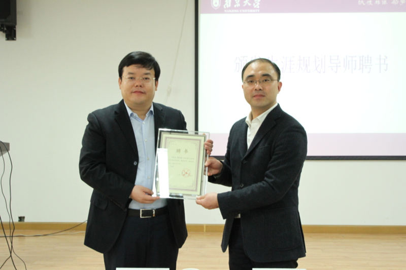 学生就业指导中心主任葛俊杰在致辞介绍了中建八局和凯发的合作情况,希望开启名校和名企合作的的新篇章,并为惠乐怡颁发了凯发k8官网学生生涯规划导师聘书。